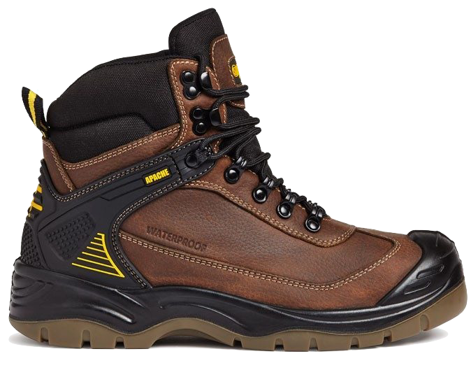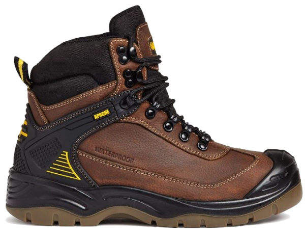 Apache Ranger Brown S3 van waterdicht volnerf leer. Stoere ergonomische S3 veiligheidsschoen. Antistatisch met een TPU hielsteun. Een goede allround waterdichte veiligheidslaars voor een breed scala aan buitentoepassingen en zwaar werk. En het beste is, hij is nu in de aanbieding. Het gewicht is circa 680 gram per schoen bij maat 42.