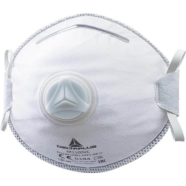 Doos met 10 gelaatsmaskers FFP1, uit non woven kunststof vezel dat bescherming biedt tegen nevels van niet giftige vaste stoffen en vloeistoffen. Schaal van PVC bestaande uit een stel bandjes van elastomeer, een verstelbare neusstrip, schuim randversterking, een onder-neusstrip en een uitademventiel. Schelpvormig. Regelbare clip op de neus. Schuimboord versterking onder de neusclip. Ventiel met hoge prestaties.